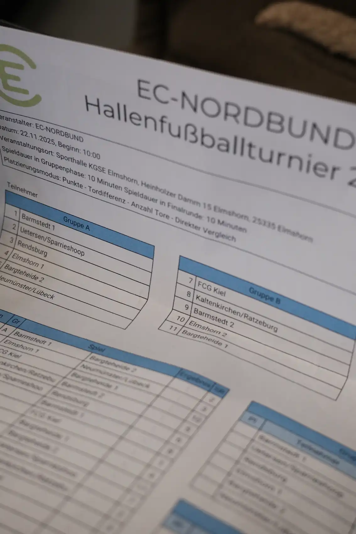 Am 22.11.2025 lief in Elmshorn das Hallenfußballturnier des EC-Nordbunds.