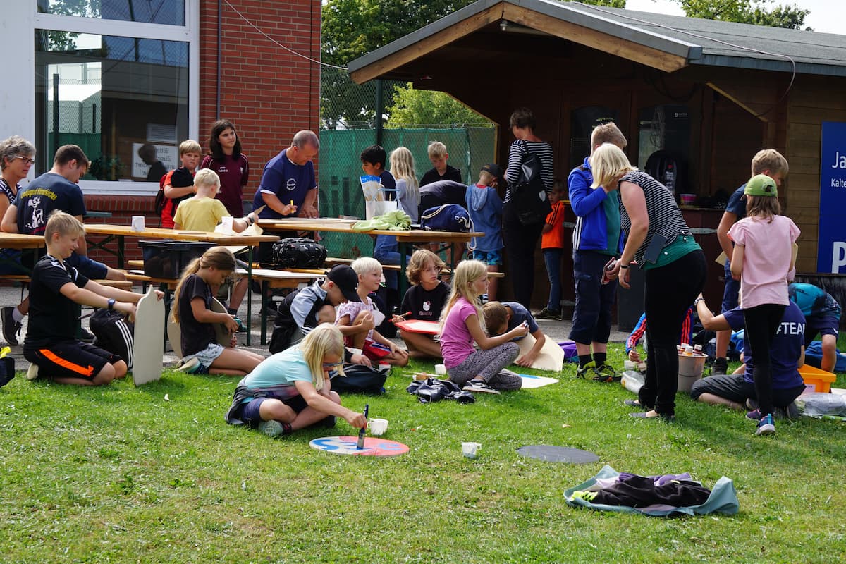 Nachdem dann alle Gruppen die Spiele bewältigt hatten, ging es weiter mit vier verschiedenen Workshops. Gewählt wurden konnte zwischen Fußball, Tanzen, einer Dorfrally und dem Bauen von Ritterschildern.